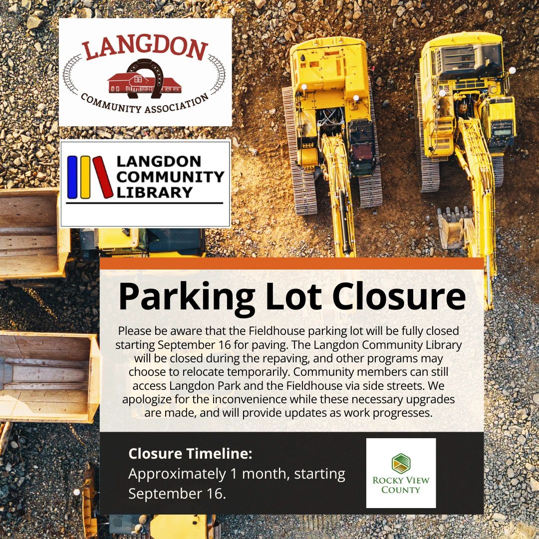 Parking Lot will be closed as of Sept 16th for approximately 1 month